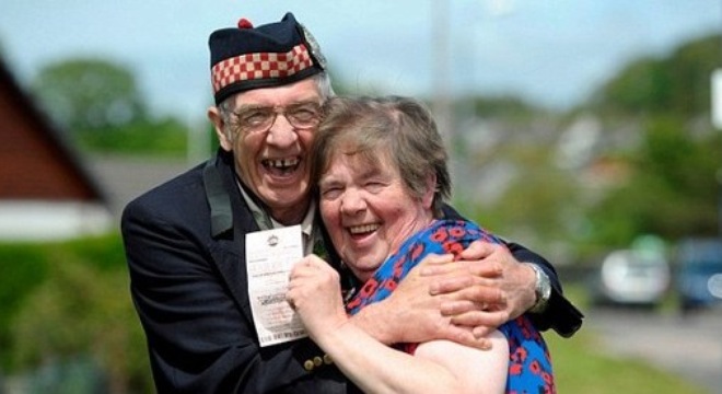 Cặp vợ chồng may mắn nói trên là ông Geordie Rhodick và bà Betty Rhodick sống ở Scotland. Ban đầu ông Geordie Rhodick, 71 tuổi đã ném 2 tờ vé số giải EuroMillions vào thùng rác sau khi kiểm tra qua loa và nghĩ không trúng giải.