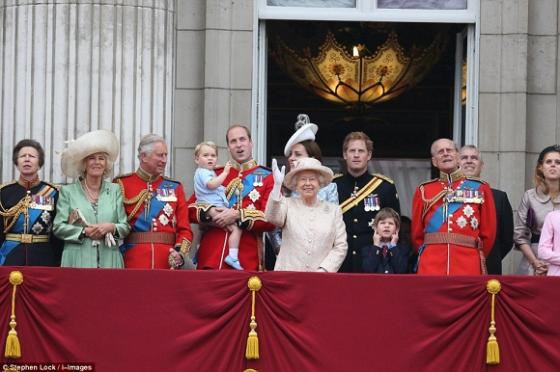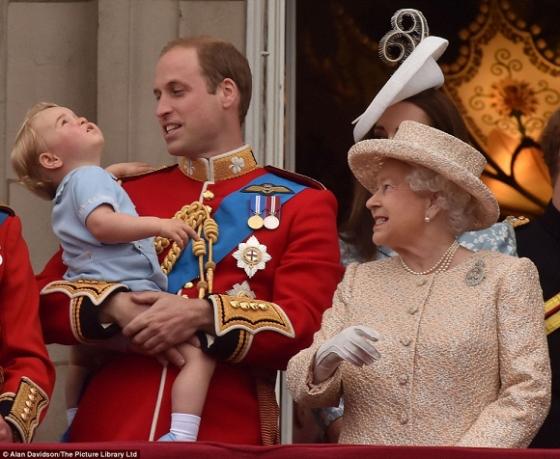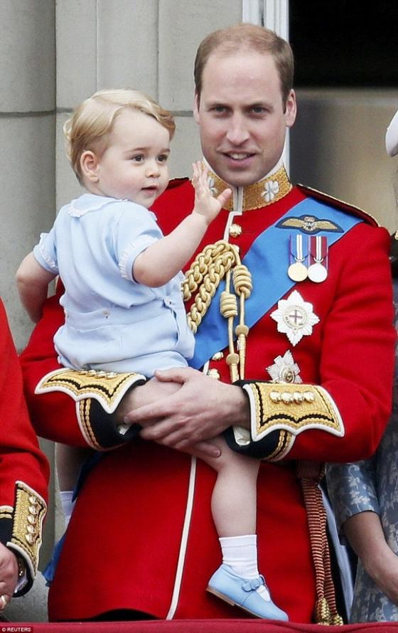 Hoàng tử George đáng yêu như thiên thần khi xuất hiện đã thu hút mọi sự chú ý trong sự kiện chúc mừng sinh nhật Nữ hoàng Anh. Cách đây 31 năm ông cũng bế bố cậu và cũng trang phục thế này trong sự kiện tương tự. Thật tuyệt vời!
