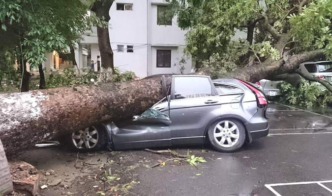 Cây xanh đổ, đè bẹp một chiếc ô tô. (Ảnh: otofun)