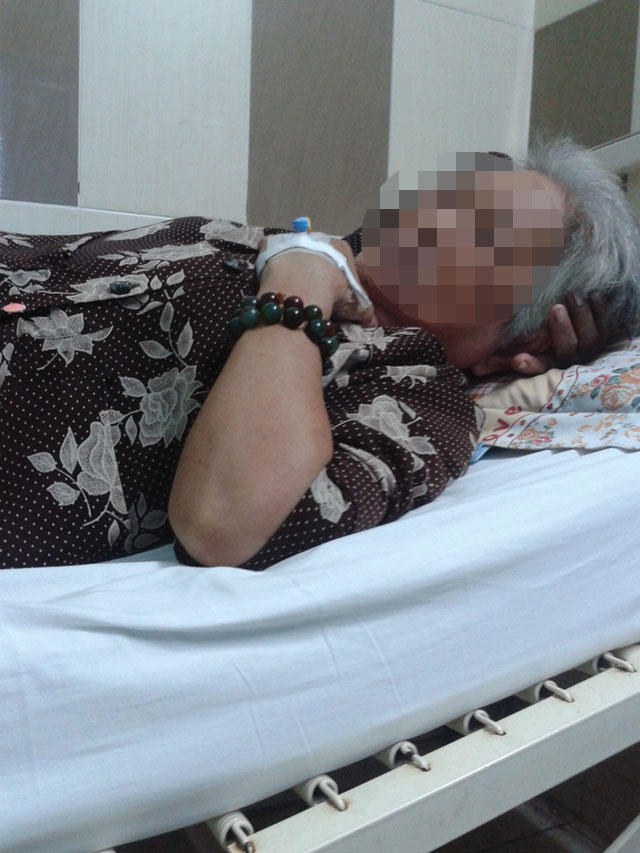 Chúng tôi tìm đến phòng 5.2, khoa Tổng hợp bệnh viện Nguyễn Tri Phương thì bà B. đã ở đây được ba ngày. Nghe nhắc chuyện đứa cháu ngoại, bà rơm rớm nước mắt: “Không phải nó đánh tôi. Nó đánh dì Sáu nó, tôi vào can thì bị nó đấm vào đầu khiến tôi ngất xỉu”.