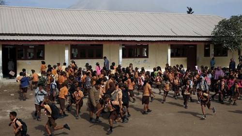 Các học sinh tán loạn trở về nhà sau khi nhận được thông báo ngọn núi lửa hoạt động.