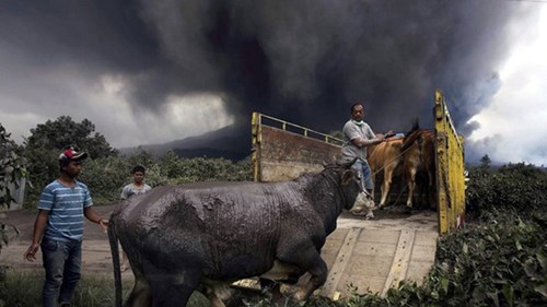 Hôm qua 19/6, núi lửa Sinabung ở tỉnh Sumatra của Indonesia lại phun trào, tạo ra những đợt tro bụi khổng lồ, đen kịt cả bầu trời. Tận mắt chứng kiến những cảnh tượng này, không ai không nghĩ rằng ngày tận thế đến gần. Những hình ảnh thật đáng sợ với những cột tro bụi khổng lồ bốc cao, lửa cháy ngùn ngụt không ngừng.