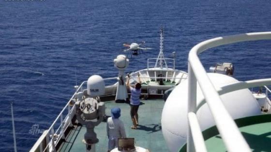 Tàu hải giám 2168 sử dụng máy bay không người lái hoạt động ở quần đảo Hoàng Sa của Việt Nam - Ảnh:Sina.com