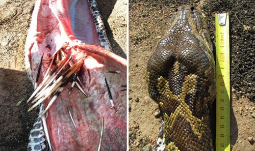 Các lông nhọn của nhím đã đâm thủng cơ quan nội tạng của trăn.