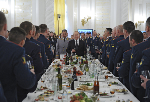 "Chúng tôi không đe dọa bất kỳ ai và chúng tôi nỗ lực giải quyết tất cả các tình huống xung đột thông qua giải pháp chính trị, bằng sự tôn trọng đối với luật pháp quốc tế và lợi ích của các nước khác", RT dẫn lời ông Putin phát biểu trước các cử nhân học viện quân sự. Putin nhấn mạnh rằng Nga là một nước cởi mở và sẵn sàng hợp tác với bất kỳ quốc gia nào trên điều kiện bình đẳng.