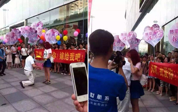 Cuối giờ chiều ngày 27/6, tại trung tâm thương mại Hoàng Thạch (tỉnh Hồ Bắc, Trung Quốc), cô gái trẻ Trần Lộ, đã nghẹn ngào, xúc động nhận lời cầu hôn của bạn trai, một người đàn ông họ Vương đã 60 tuổi.
