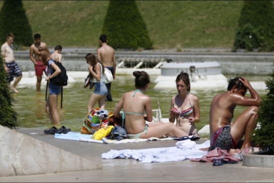 Chưa từng có năm nào nóng khủng khiếp như năm nay. Trong tháng 7 này, nhiệt độ ở Đức và Pháp được dự báo sẽ tăng cao đến mức kỷ lục. Nhiều nam thanh nữ tú biến quảng trường thủ đô Paris này nơi giải nhiệt thú vị. Nữ chỉ toàn diện bikini, đàn ông thường chỉ đánh mỗi cái quần cộc. Khung cảnh thật vui mắt.