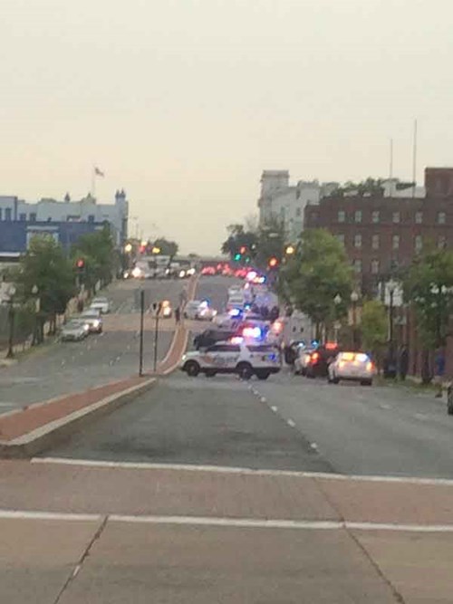 Lực lượng cảnh sát nhanh chóng tiến hành phong tỏa các ngả đường sau khi nhận thông tin về vụ xả súng ở căn cứ quân sự Mỹ tại Washington DC.