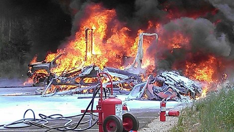 Vụ tai nạn cũng đã phá hủy một chiếc xe tải gần đó và ảnh hưởng nghiêm trọng đến thảm thực vật xung quanh.