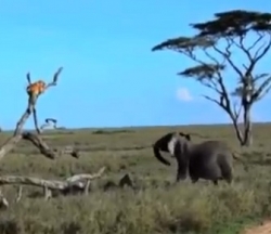 VBF-Clip ghi lại hình ảnh 1 con voi xám đang truy đuổi con sư tử bị lạc đàn nguyên do là con sử tử này đã đi vào lãnh địa của nó. Đây là những hình ảnh đuwọc ghi tại vùng thảo nguyên Serengeti ở Tanzania.