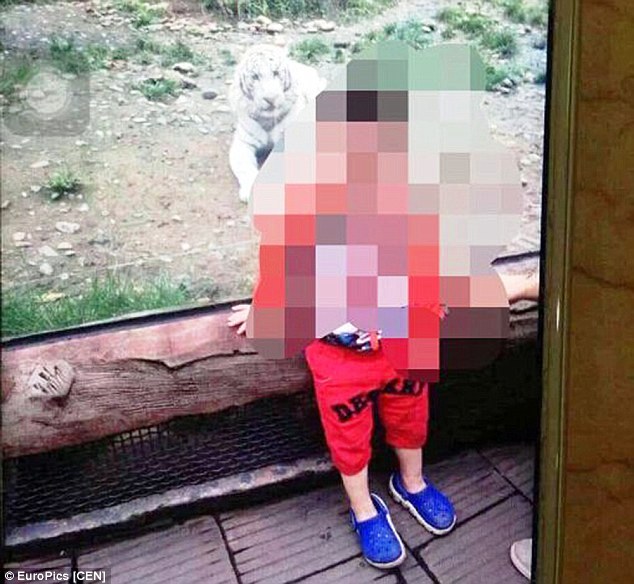 Trước đó, bé trai này đã chụp một bức ảnh đứng trước chuồng hổ. Sau đó, bé đút tay phải qua lỗ thông hơi bên dưới tấm kính của chiếc chuồng để thu hút sự chú ý của con vật. Chỉ chưa đầy 30 giây, con hổ đã lao đến cắn đứt tay em.