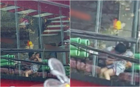 Do quán ăn nhanh được làm bằng kính trong suốt nên người đi đường đi qua khu vực quán có thể nhìn rõ từng cử chỉ, hành động của đôi nam nữ này. Một trong số những người đi đường đã ghi lại hình ảnh, clip rồi tung lên mạng xã hội khiến nhiều người sốc nặng.