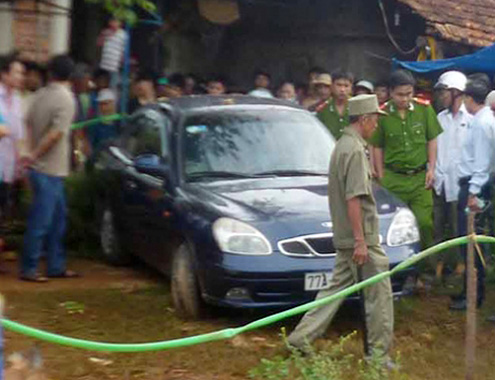 Hiện trường phát hiện Bí thư Huyện ủy huyện Hoài Nhơn chết trong ôtô cùng cô gái trẻ. Ảnh: Đ.Anh.