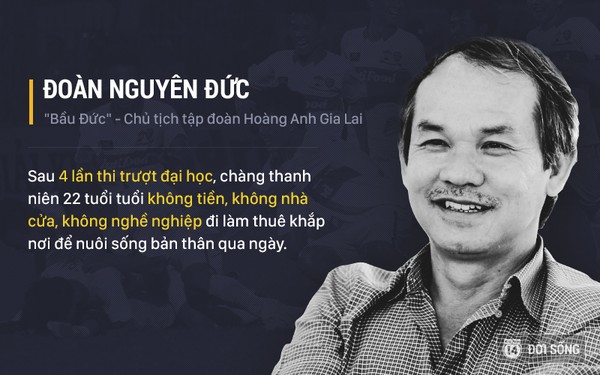 "Bầu Đức" cũng chính là một trong những tấm gương vượt qua chính mình xứng đáng để người ta học hỏi. Có lẽ không phải ai cũng biết rằng ông đã từng thi trượt đại học đến 4 lần. Và rồi từ hai bàn tay trắng, chàng trai trẻ "không tiền, không nhà cửa, không nghề nghiệp" đã bươn chải khắp nơi để rồi trở thành một người rất thành công bây giờ.