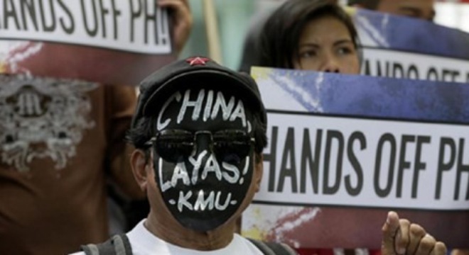 Dân Philippines biểu tình phản đối sự hung hăng của Trung Quốc trên Biển Đông (ảnh: AP)