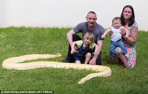 Gia đình của Rob Cowan và Stacey nuôi 19 con rắn trong nhà của họ tại Bradford. Lớn nhất trong số các "vật nuôi" đó chính là con trăn Miến Điện nặng gần 100kg và dài 5m. Loài trăn này là một trong những kẻ săn mồi nguy hiểm nhất trên thế giới. Trong môi trường hoang dã, trăn Miến Điện có thể nuốt chửng lợn, nai và thậm chí cả cá sấu.