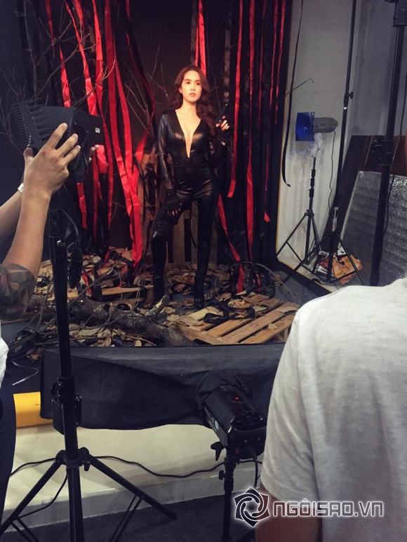 Cảnh hậu trường khi Ngọc Trinh hóa thành nữ cảnh sát xinh đẹp chụp ảnh game