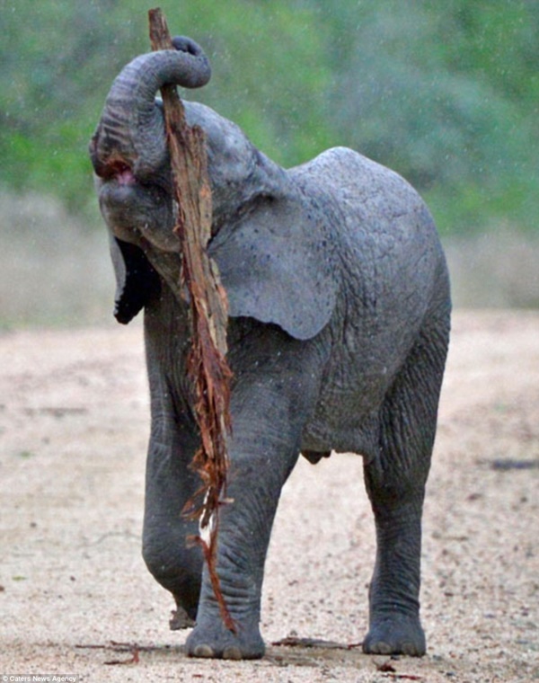 Nhiếp ảnh gia Nam Phi, Sean Parker, 40 tuổi, người chụp lại bộ ảnh này, nói: “Nhìn chú voi con với vỏ cây thật thú vị. Lúc đó, voi mẹ đang dẫn hai voi con qua đường, trời có chút mưa nhẹ. Chú voi con có vẻ bị ngứa, nó tìm thấy miếng vỏ cây bên đường để “gãi”. Phải mất nửa giờ, con voi con mới thấy thỏa mãn và tiếp tục bước đi.”