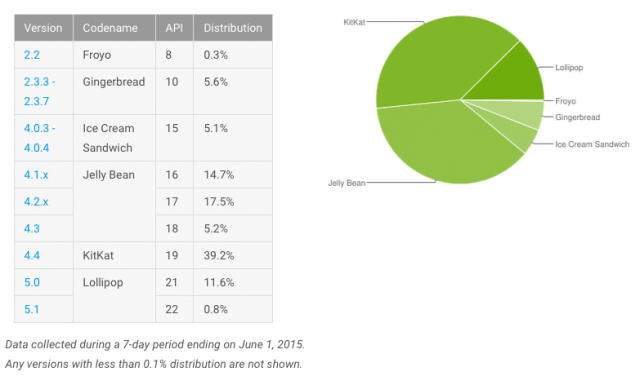 Theo thống kê của trang developer.android.co m, tính đến 1/6/2015, Android 4.4 (KitKat) hiện đang là phiên bản Android phổ biến nhất hiện nay, với 39% thị phần. Đứng thứ hai là Android 4.2 Jelly Bean với 17,5%, và tiếp theo là Android 4.1 Jelly Bean với 14,7%. Android 5.0 và 5.1 Lollipop, hai phiên bản Android gần đây nhất, chỉ chiếm lần lượt 11,6 và 0,8% thị phần. Đó mới chỉ là thống kê chung về riêng Android. Sau khi đến tay từng nhà sản xuất như Samsung, Sony, LG, Motorola, ZTE, Huawei, HTC... sự phân mảnh của nền tảng này còn lớn hơn khiến cho việc vá lỗi trở nên khó khăn, phức tạp. Collin Mulliner, nhà nghiên cứu cấp cao của trường đại học Northeastern, cho biết trong một cuộc phỏng vấn: "Trong trường hợp này, Google không phải là cái tên duy nhất đáng bị chỉ trích; đó còn là cả nhà sản xuất, và có thể là cả nhà mạng viễn thông. Nếu có thể tiết kiệm được ít tiền bạc từ việc không phát hành các bản cập nhật phần mềm, nhà sản xuất có thể sẵn sàng làm điều đó. Hơn nữa, thị trường di động đang phát triển nhanh, và nhiều hãng smartphone cho rằng việc tốn nguồn lực các bản update chẳng mang lại lợi ích gì".