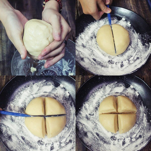 Bước 3: Vo tròn cục bột để làm thành mặt con heo.
