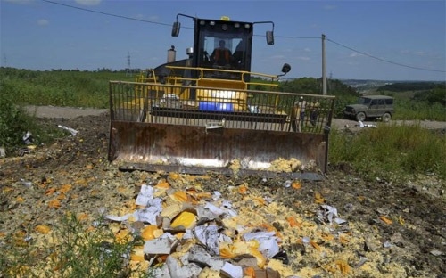 Cho đến giờ, Nga cho tịch thu và trả về nơi xuất phát các sản phẩm đưa trái phép vào Nga. Nhưng cuối tuần qua, như để thị uy và cho thấy sự cương quyết của ông Putin không lùi bước trước Châu Âu, chính quyền Nga đã cho phá hủy hàng trăm tấn thực phẩm.