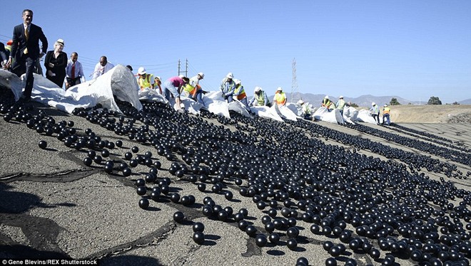 Vietbf.com - Một đập nước kỳ lạ thả xuống 96 triệu quả bóng nhựa phủ luôn trên bề mặt đập chứa nước rộng 70 hecta để ngăn chặn nước bốc hơi trong đợt nắng hạn kỷ lục, mà chính quyền thành phố Los Angeles, bang California, Mỹ, phải thả hàng triệu bóng có tác dụng ngăn cản bụi, hóa chất hoặc các chất bẩn (như phân chim) gây ô nhiễm nguồn nước. Vì biện pháp này ít tốn kém nhất so với các công nghệ khác để bảo quản nguồn nước trong mùa hạn hán nghiêm trọng, và cũng giúp thành phố tiết kiệm được khoảng 250 triệu USD mà vẫn duy trì nguồn nước hiệu quả cho người dân thành phố.
