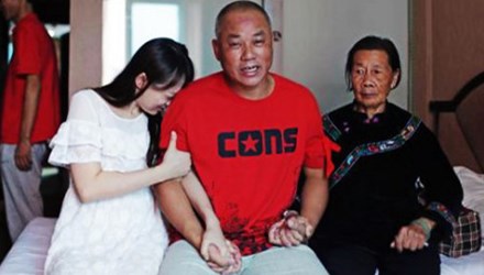 Ông Yang cúi lạy mẹ sau khi được trả tự do. Ảnh:Thepaper.cn .