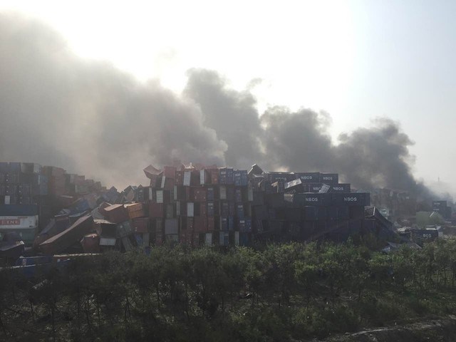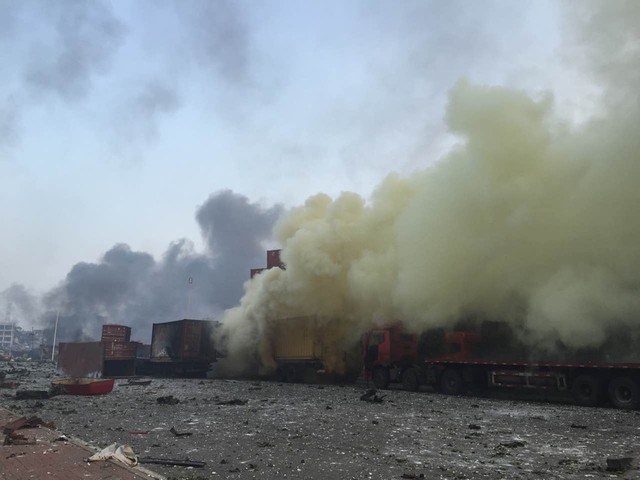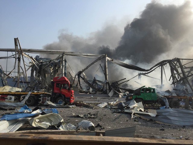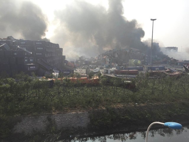 Trang tin Sohu (Trung Quốc) dẫn nguồn tin từ người dân địa phương cho hay, vào thời điểm xảy ra vụ nổ Thiên Tân, người dân cách hiện trường vụ việc vài cây số cũng có thể cảm nhận thấy một sự rung chuyển vô cùng lớn. Khoảng 1000 chiếc ô tô đã bị thiêu rụi. Nơi xảy ra vụ nổ Thiên Tân là khu vực cầu cảng, nên xung quanh có rất nhiều xe contener và hàng hóa. Ngọn lửa ngùn ngụt đã thiêu rụi toàn tất cả những thứ xung quanh. Khu vực chịu ảnh hưởng trực tiếp của vụ nổ Thiên Tân lên đến 20.000m2. Vật liệu cháy rất phức tạp, hiện chưa thế xác định cụ thể là vật chất gì. Tuy nhiên trong đám khói bốc lên, có rất nhiều màu sắc khác nhau.