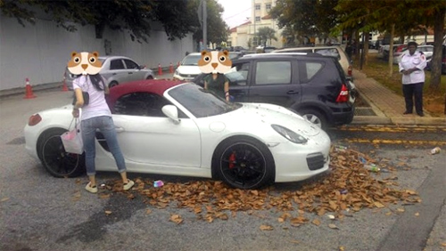 Hành động ích kỷ này sau đó gây cản trở nhiều tài xế khác khi cho xe ra, vào bãi đỗ khiến họ phải đi đường vòng. Rồi một người quyết định gửi thông điệp tới nữ tài xế vô trách nhiệm bằng cách để cả đống lá khô lên nắp ca-pô và kính chắn gió trước khi úp một thùng rác lên nóc chiếc Porsche.