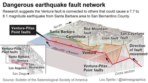 Thông tin về sóng thần được đưa ra sau khi có khảo sát động đất tập trung vào các đường phay nằm sâu ngoài khơi các vùng của Santa Barbara và Ventura, vốn có khả năng tạo ra đại chấn động mạnh từ 7.8 đến 8.1 độ.