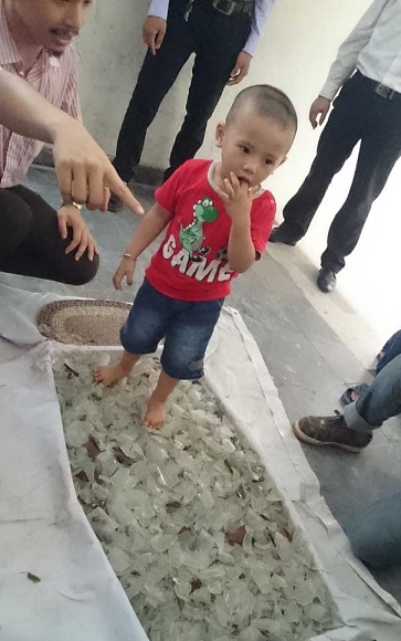Ông lý giải, theo nguyên tắc vật lý, mảnh vỡ thủy tinh to cỡ 3cm và độ dày từ 3-5mm thì khi đặt bàn chân lên sẽ rất khó bị cắt vào da thịt. Trên mảnh thủy tinh, mảnh nào nhọn, thiết diện bé, áp suất lớn sẽ nằm ở dưới, còn mảnh nào nằm ngang, thiết diện lớn, áp suất bé sẽ nằm ở bên trên. Như vậy, đi trên mảnh thủy tinh sẽ không bị đau, có khi còn êm chân.