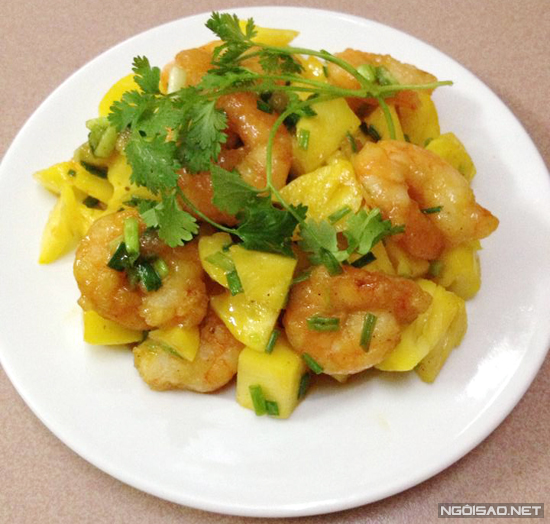 Dứa xào với tôm hợp đến không ngờ, thêm nước sốt chua ngọt nữa càng ngon.