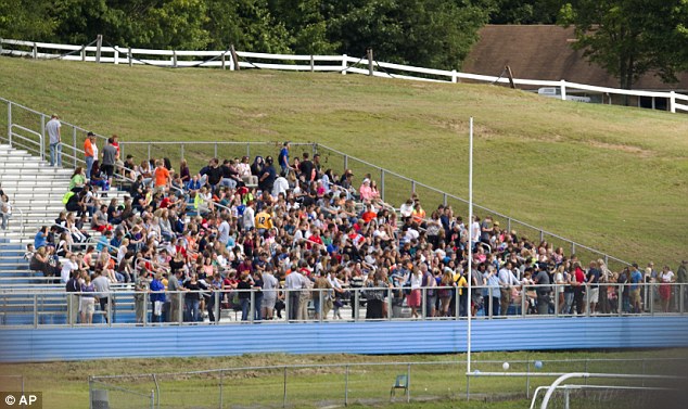 Học sinh trường trung học PhilipBarbour được di tản ra sân bóng ném trong thời gian khủng hoảng bắt giữ con tin - – Photo Courtesy: Daily Mail