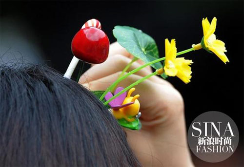 Những chiếc kẹp "nở hoa" được kẹp ngay trên đỉnh đầu trông rất lạ mắt