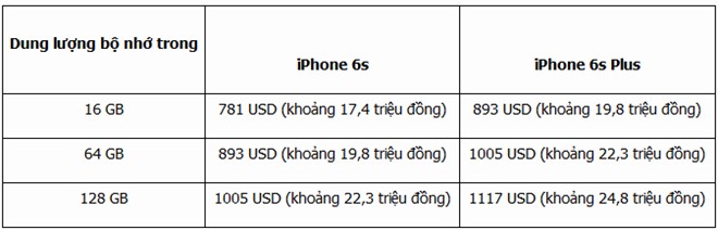 Đây chỉ là mức giá bán tham khảo bộ đôi iPhone 6s và 6s Plus tại thị trường Hà Lan, hiện vẫn chưa rõ mức giá bán của sản phẩm này tại các thị trường Châu Á.