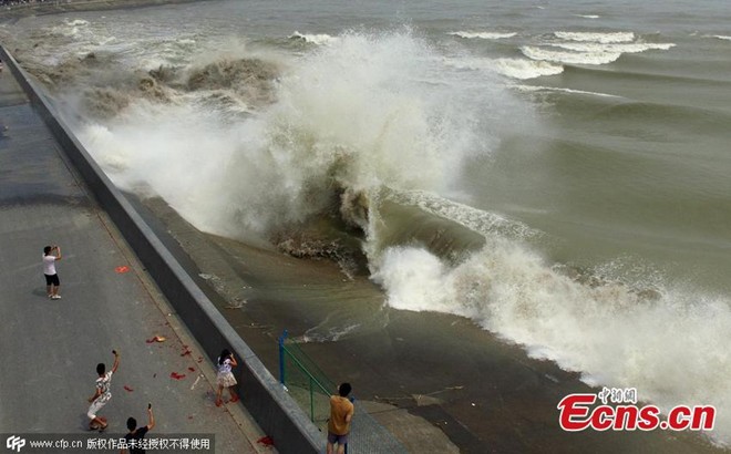Những đợt sóng khổng lồ trên sông Tiền Đường vỗ mạnh vào đê chắn ở thành phố Hàng Châu, tỉnh Chiết Giang, Trung Quốc. Tiền Đường là con sông lớn nhất tỉnh Chiết Giang, chảy theo hướng tây - đông. Triều cường trên sông là một trong những kỳ quan thiên nhiên nổi tiếng thế giới. Những đợt sóng trên sông Tiền Đường hình thành dưới ảnh hưởng của thủy triều từ Đông Hải. Lực ly tâm được gây ra bởi chuyển động quay của trái đất và hình dạng thắt nút cổ chai khác thường của vịnh Hàng Châu khiến thủy triều dễ tràn nhưng khó rút.