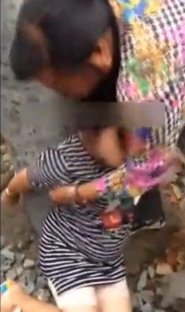 Mãi tới khi người đàn ông bỏ đi mới có người ra giúp đỡ người phụ nữ đáng thương.
