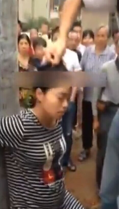 Hình ảnh một phụ nữ mang thai bị trói vào cột, liên tiếp bị một người đàn ông mắng chửi và đánh đập đang được chia sẻ với tốc độ chóng mặt trên mạng xã hội Trung Quốc.