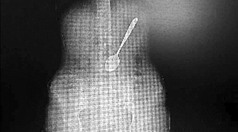 Cô Vương cho biết, lúc ở nhà đă nuốt phải một chiếc th́a do ăn vội vàng bát mỳ. Khi nạn nhân đến bệnh viện và tŕnh bày t́nh trạng, các bác sĩ không tin nổi. Tuy nhiên, phim X-quang đă cho thấy một chiếc th́a nằm chếch 30 độ trong bụng nạn nhân, nó có thể chọc thủng dạ dày và gây tổn thương nội tạng.