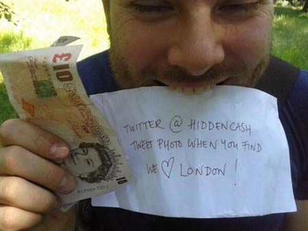 Hồi tháng 6/204, cư dân thành phố London không khỏi “phát sốt” với màn rải tiền bí ẩn của triệu phú bất động sản Mỹ Jason Buzi. Theo đó, Jason Buzi đã tới London và đem phong bì tiền chứa 100 bảng Anh giấu khắp nơi trước khi bật mý gợi ý trên trang Twitter.