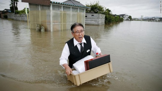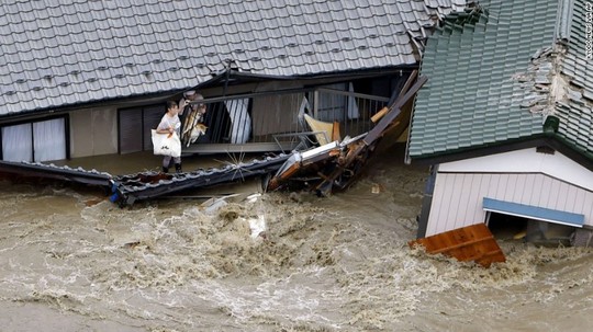Bão Etau quét qua Nhật Bản hồi đầu tuần khiến lượng mưa tăng vọt, gây ra lũ lụt và sạt lở đất. Hàng chục người dân các vùng bị ảnh hưởng phải trèo lên mái nhà chờ lực lượng cứu hộ dùng thuyền và trực thăng tới đón. Hàng ngàn người đã được đưa đến nơi trú ẩn tạm thời.