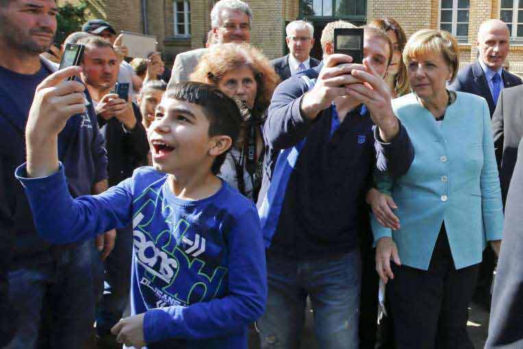 Những Syria đã reo hò và chụp ảnh selfie với nữ Thủ tướng sau khi nước Đức mở cửa đón nhận hàng ngàn người tị nạn.