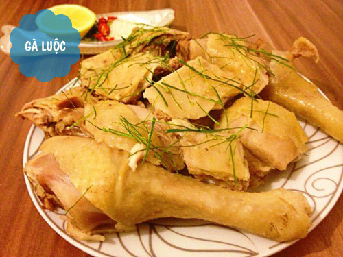 Đun sôi nước, cho gà vào luộc (mặt lưng quay xuống đáy nồi), để nước tiếp tục sôi 5 phút rồi trở gà, phần ức quay xuống dưới. Luộc thêm 10 phút rồi tắt bếp, vẫn ngâm gà trong nồi kín vung thêm 20 phút rồi vớt gà ra, rửa quay nước lọc, hoặc nước sôi để nguội.
