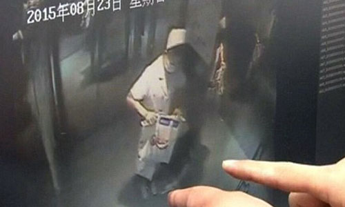 Video giám sát tại bệnh viện ghi lại được thời điểm lúc Zhao bế đứa bé đi. Ảnh: Gucheng