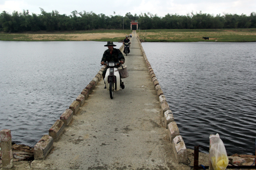 “Năm 2006, sau khi cầu phao bị lũ cuốn, tôi quyết định lên huyện xin kinh phí làm cầu, nhưng không được đồng ý. Họ bảo huyện chỉ có dự án làm cầu treo, còn ở đây là đồng bằng, toàn đất cát ven sông nên không làm cầu treo được”, người đàn ông tóc bạc trắng nói.
