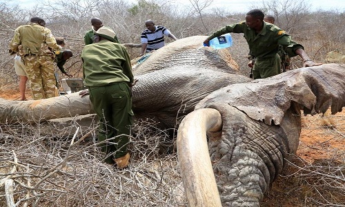 Con voi bị trúng tên tẩm độc từ những tay săn trộm. Ảnh: DSWT.