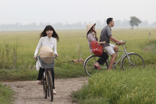 Trong những cảnh quay đầu của phim "Vòng eo 56", người mẫu trở lại hình ảnh cô gái 15 tuổi, đạp xe trên con đường quê tới trường.