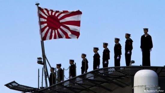Lễ thượng cờ trên một tàu chiến của lực lượng Phòng vệ biển Nhật Bản. Ảnh: Reuters