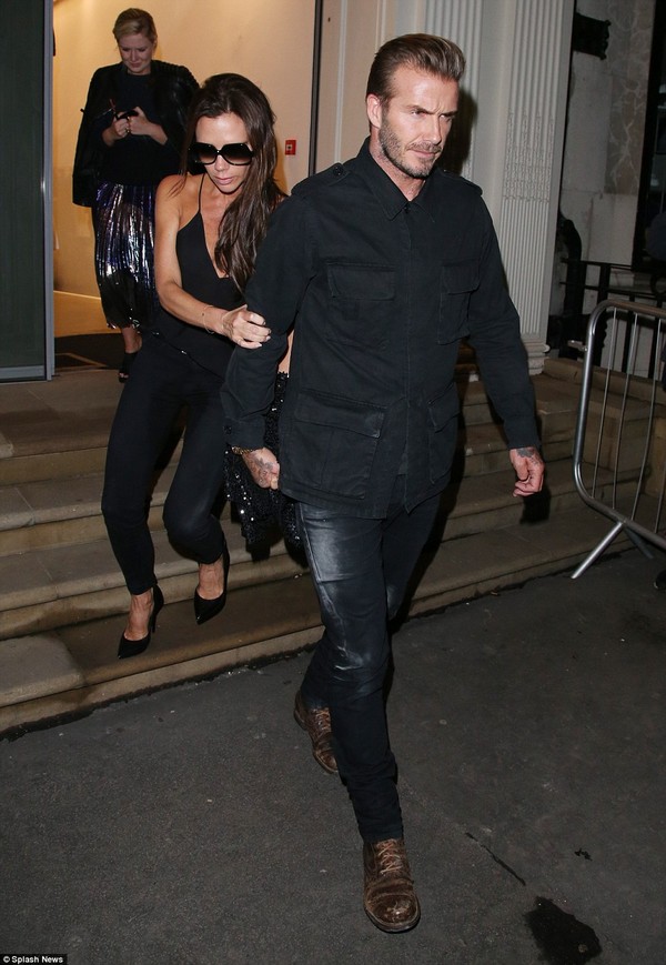 Vic ôm chặt tay Becks bước ra xe. Bà mẹ 4 con đi loạng choạng, có lẽ do đã uống quá chén.