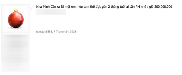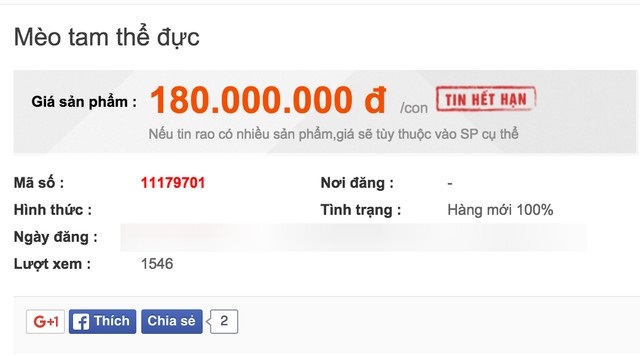 Rất nhiều bản tin rao bán mèo tam thể đực có mức giá lên tới hàng trăm triệu